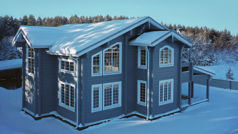 Словно аристократичный британец с безупречным вкусом, этот дом смотрится гордо и независимо, и бережно охраняет свой внутренний мир. Двухэтажный, компактный, устремленный вверх, он отлично справляется с ролью английского джентльмена, голубую кровь которого прекрасно подчеркивает небесный оттенок наружных стен. Выполненный в классическом стиле, такой дом из клееного бруса действительно напоминает европейский коттедж. В нем гармонично сочетаются элегантность и сдержанность, утонченный вкус и природные материалы.