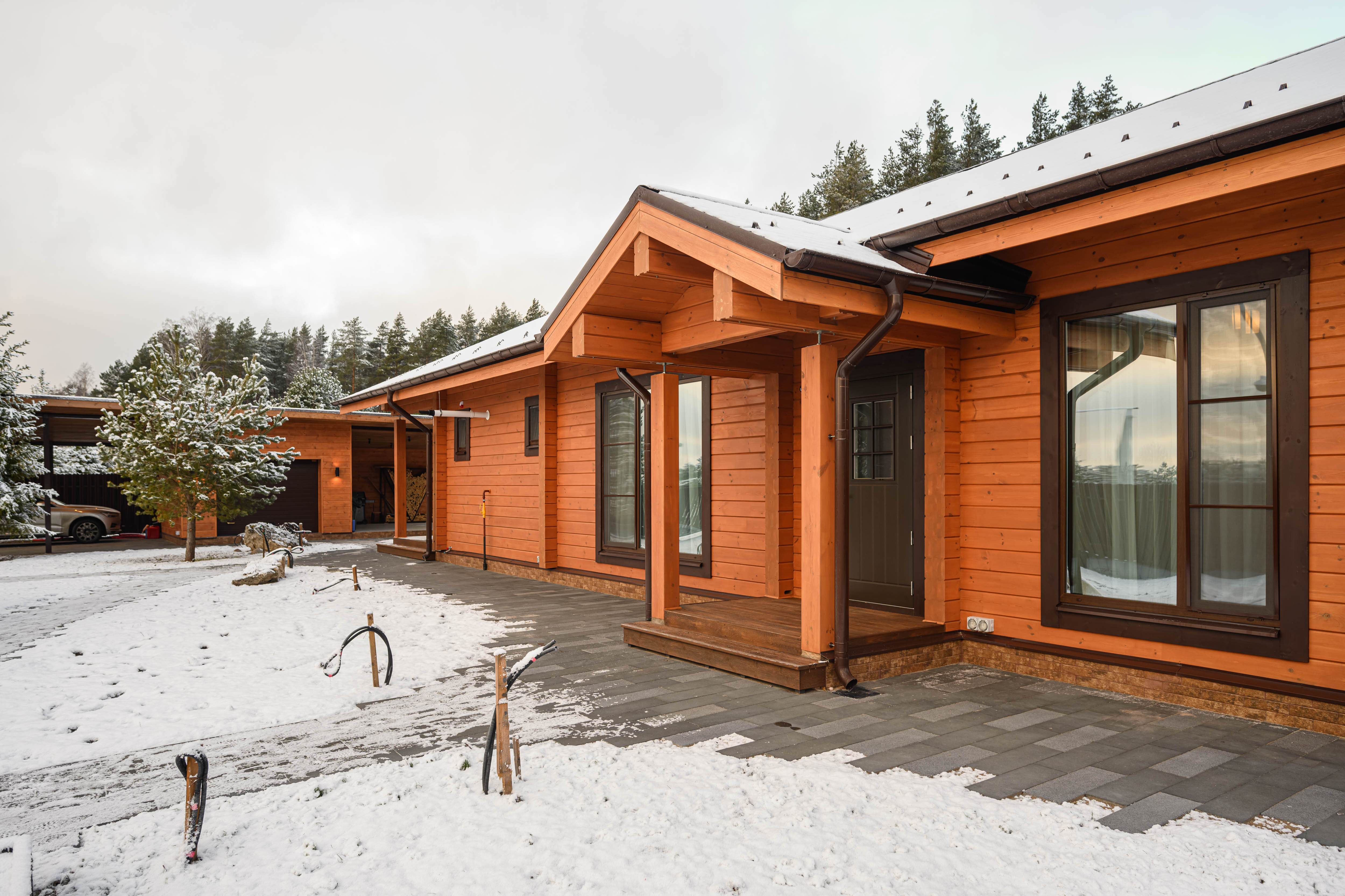 Дом из клееного бруса по проекту «Лахти v2» – идеальный вариант для тех, кто ищет просторный одноэтажный дом с лаконичным стильным интерьером и комфортной уютной планировкой.