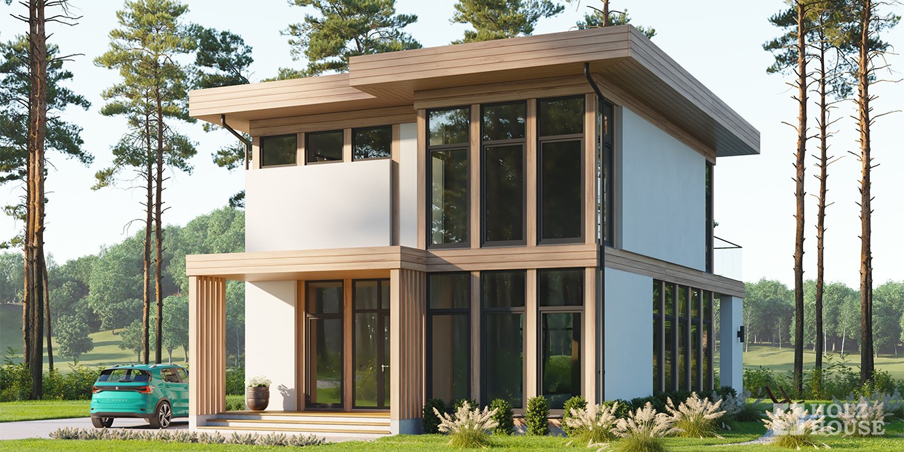 "Рошфор" - это настоящий дом будущего: функциональный, комфортный и экологичный. Современный и смелый дизайн, в котором выполнен проект, будет актуален на долгие годы вперед. Благодаря тому, что дом обладает своеобразной индивидуальностью, он будет отлично смотреться как в окружении лесного массива, так и на открытом участке.