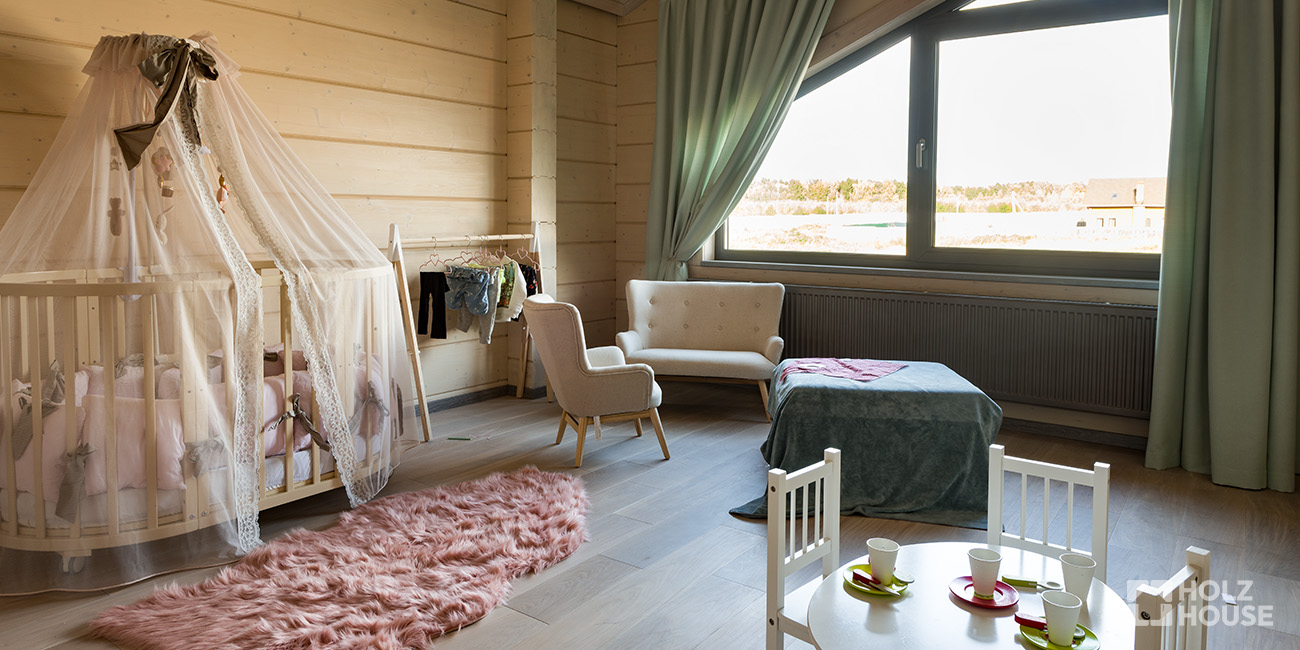 Сотрудничество с компанией Holz House в вопросе проектирования детской в доме из клееного бруса имеет свои преимущества. Во-первых, мы предоставляем индивидуальный подход к проектированию, позволяющий учесть все пожелания и родителей, и детей. Во-вторых, клееный брус нашего производства дает возможность воплощать самые смелые архитектурные решения и разнообразные стили – от типовых проектов до индивидуальных. Материал нашего производства гарантированно имеет экологически чистый состав, что особенно важно для комфорта и здоровья детей.