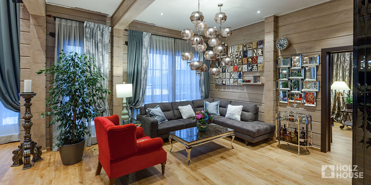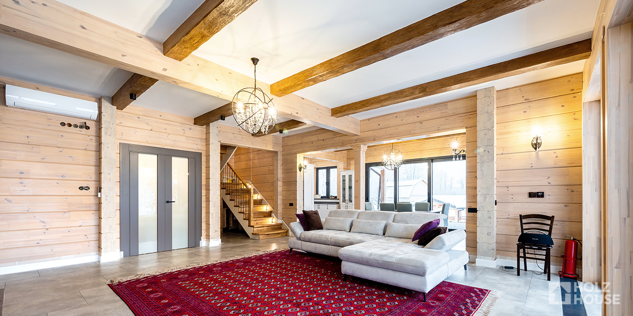 - А вот дома из клееного бруса Holz House лишены этих недостатков. Минимальная усадка, предсказуемое поведение конструкции и ровные поверхности делают их идеальной основой для монтажа натяжных потолков.